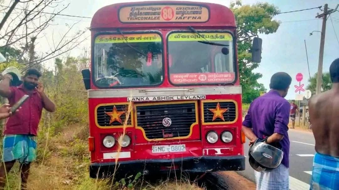அதாவது திருகோணமலையிலிருந்து யாழ்ப்பாணம் நோக்கி பேருந்து பயணித்துக்கொண்டிருந்த வேளை எழுதுமட்டுவாள் பகுதியில் உள் வீதியிலிருந்து வந்த மோட்டார் சைக்கிள் ஏ9 வீதியில் ஏற முற்பட்ட போது இந்த விபத்து இடம்பெற்றுள்ளது.