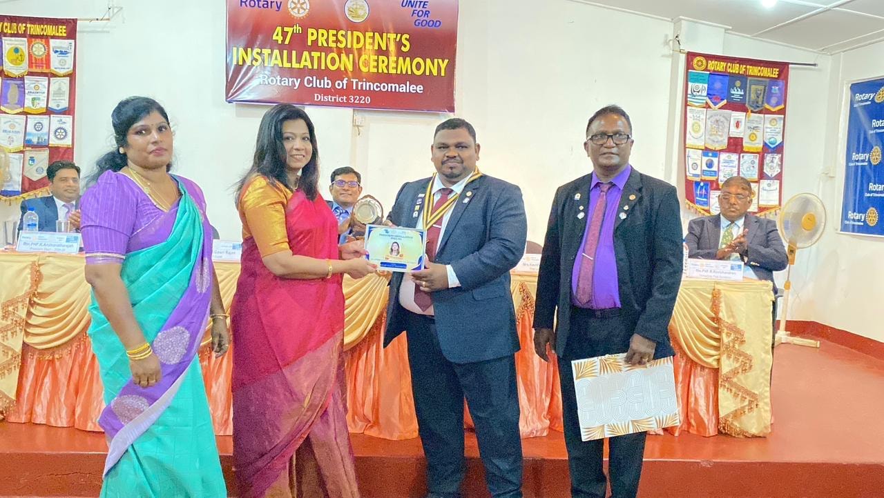 IPP. எஸ். ஜெகதீஸ்வரன் அவர்கள் புதியதாகத் தேர்ந்தெடுக்கப்பட்ட தலைவர் றொட்டேரியன். க. பிரபாகரனை வாழ்த்தி, கழகத்தை வழிநடத்த அவருக்கு வாழ்த்துக்களை வழங்கினார். பிரதம விருந்தினராக உரையாற்றிய PDG கௌரி ராஜன் அவர்கள், திருகோணமலை ரோட்டரி கழகம் பின்தங்கிய சமூகங்களுக்கு வழங்கி வரும் சிறப்பான சேவையை பாராட்டி, அப்பகுதி மக்களுக்கு அவசரத் தேவைகள் ஏற்பட்டால் உதவத் தயாராக இருப்பதாக உறுதியளித்தார்.