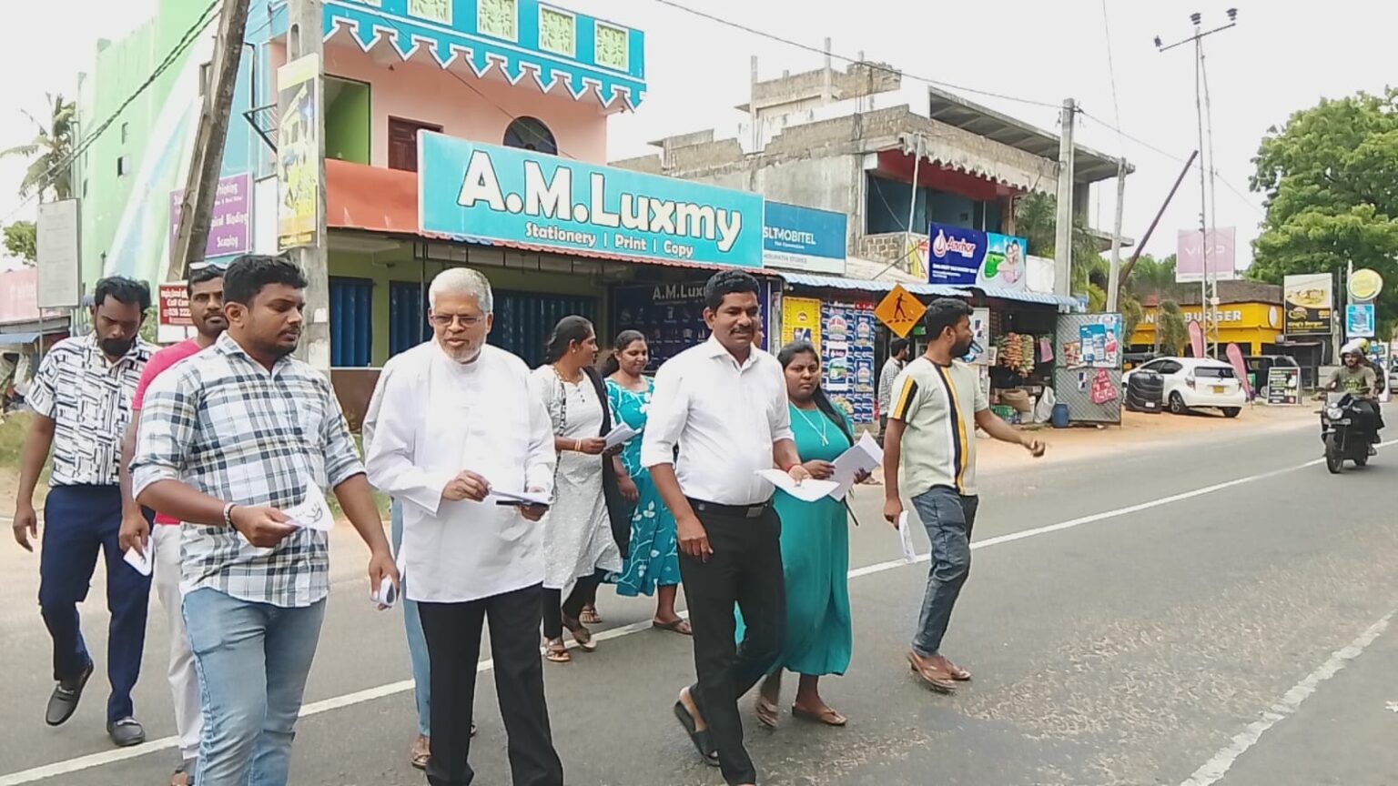 துண்டுப்பிரசுரம் விநியோகிக்கும் நடவடிக்கையில் திருகோணமலை மாவட்ட பாராளுமன்ற உறுப்பினர் சண்முகம் குகதாசன், நகரசபை முதல்வர் க.செல்வராஜா, பட்டணமும் சூழலும் பிரதேச சபை தவிசாளர் வெ.சுரோஸ்குமார் மற்றும் ஸ்ரீலங்கா முஸ்லீம் காங்கிரஸ் கட்சியின் பிரதேச சபை உறுப்பினர் ஏ.எல்.எம்.பசீர் உள்ளிட்டோர் பங்குகொண்டு துண்டுப்பிரசுரங்களை விநியோகித்து கடை உரிமையாளர்களின் ஆதரவை கோரியிருந்தனர்.