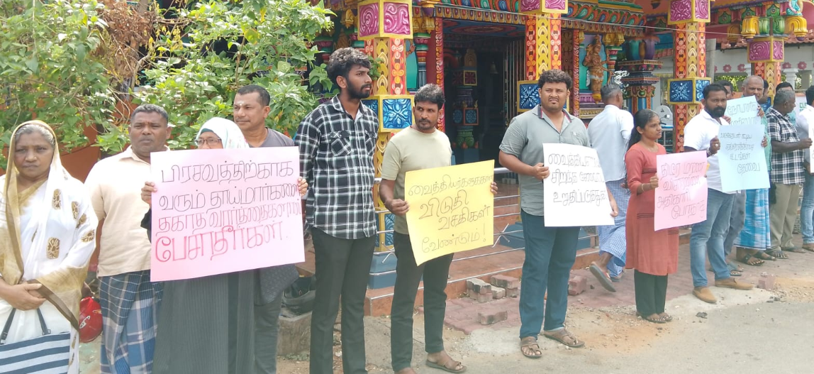 சுகாதார அமைச்சரின் வருகையை முன்னிட்டு, திருகோணமலை மாவட்ட பொது வைத்தியசாலையின் குறைபாடுகளை நிவர்த்தி செய்து சிறந்த சேவை வழங்கக் கோரி, இன்று வைத்தியசாலை முன்பாக பொது மக்கள் கவனயீர்ப்புப் போராட்டம் நடத்தினர்.